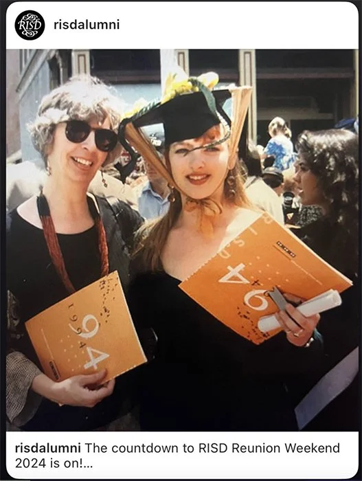 I’m back in the Motherland …. RISD Alumni just ran this image of me & Mom from my graduation in 1994. (It’s tradition to decorate your cap, mine was kind of Carmen Miranda meets Medusa with fake fruit and snakes.)
