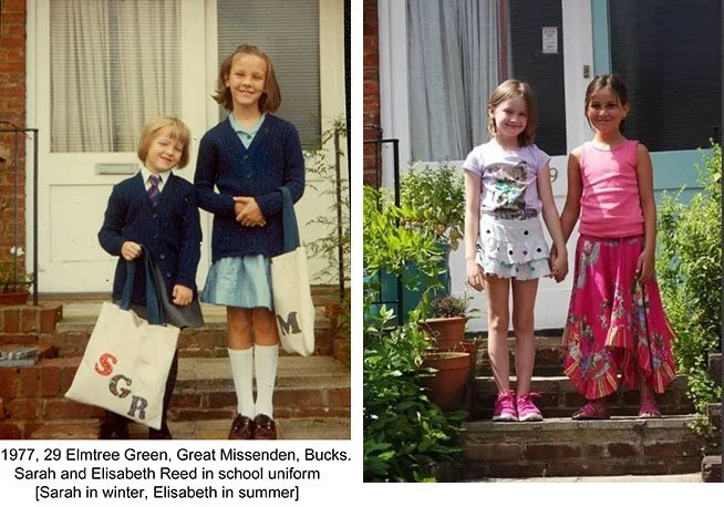 Life goes on. Me and Elisabeth in front of our house in Buckinghamshire, England in the 70s. Our kids there decades later.